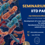 Zapraszamy na seminarium IITD, które odbędzie się 9.04.2026 r. (czwartek) o godz. 9:00 w auli Instytutu, w czasie którego mgr Katarzyna Machnik (Laboratorium Mikrobiologii Lekarskiej) wygłosi wykład pt.: „Development of a new method for culturing Mycobacterium bovis BCG substrain Moreau”.
