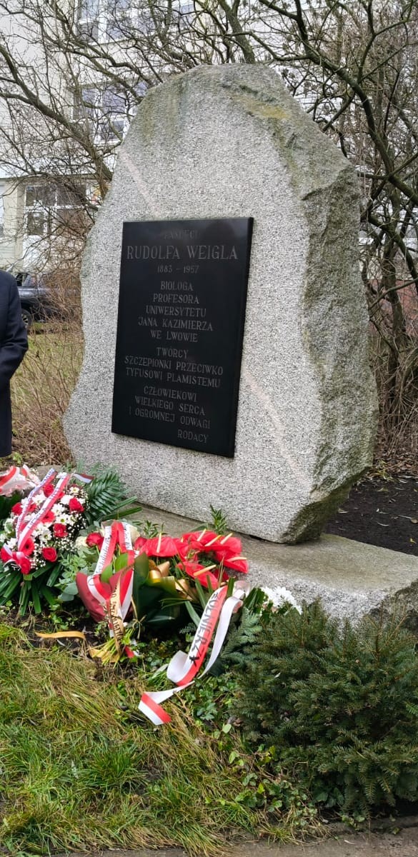 8 grudnia 2005 roku przed Instytutem Immunologii odsłonięto pomnik Rudolfa Weigla, polskiego biologa, wynalazcy pierwszej na świecie skutecznej szczepionki przeciw tyfusowi plamistemu. Wczoraj w naszym Instytucie odbyła się uroczystość z okazji 20-lecia odsłonięcia tego pomnika. Obecni byli zaproszeni goście: dr hab. Kamil Dworaczek, dyrektor Instytutu Pamięci Narodowej Oddziału we Wrocławiu, Kamilla Jasińska, zastępca dyrektora IPN we Wrocławiu, współorganizator wydarzenia, prof. dr hab. med. Wojciech Witkiewicz, dyrektor Wojewódzkiego Szpitala Specjalistycznego we Wrocławiu oraz prezes Wrocławskiego Towarzystwa Naukowego, prof. dr hab. Gabriela-Bugla-Płoskońska reprezentująca Wydział Nauk Biologicznych Uniwersytetu Wrocławskiego, prof. Łukasz Matusiak, prodziekan ds. Współpracy z Otoczeniem Wydziału Medycznego Politechniki Wrocławskiej, dr Jacek Ossowski z Rady Miejskiej Wrocławia, pisarz Mariusz Urbanek, autor książki „Profesor Weigl i karmiciele wszy”, prof. dr hab. Stanisław Ułaszewski, prezes Oddziału Dolnośląskiego Światowego Związku Żołnierzy Armii Krajowej, przedstawiciele Wojskowego Ośrodka Medycyny Prewencyjnej we Wrocławiu, przedstawiciele Towarzystwa Miłośników Lwowa i Kresów Południowo-Wschodnich (TMLiKPW), a także dyrekcja i pracownicy Instytutu.