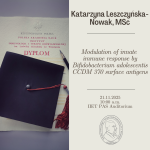 We are very proud to announce that Anna Jarząb, PhD, Eng, from the Medical Microbiology Laboratory IIET PAS, has been awarded the 25th anniversary edition of the L’Oréal–UNESCO For Women in Science Fellowship in the habilitation category. This is one of the most important awards given to female researchers, proving that science Czytaj więcej…