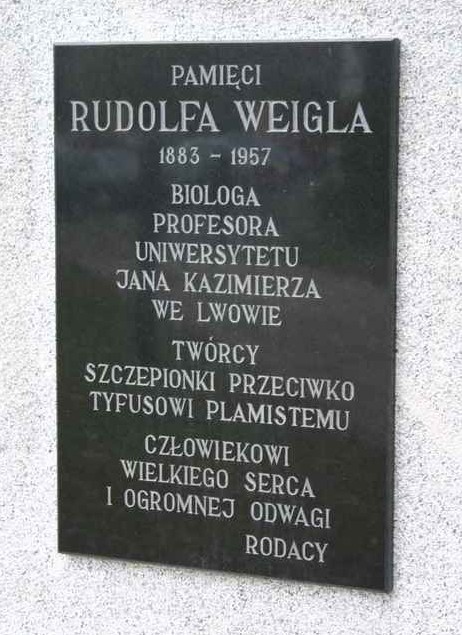 A monument dedicated to the memory of Professor Rudolf Weigl, the creator of the typhus vaccine, was unveiled in front of the Hirszfeld Institute on December 8, 2005. The obelisk was funded by public donations, mainly from the residents of Lviv – the “Weiglers” – a handful of Weigl’s last colleagues, and lice feeders who, thanks to a certificate from the Institute for Research on Typhus and Viruses in Lviv (1939-1944), survived the war, avoiding deportation to the Reich, prisons, and death.